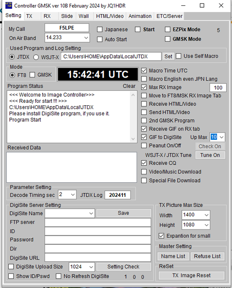 Pour les fans de belles images, une autre solution consiste à réceptionner des images envoyées via le FT8 . Une petite application développée par JQ1HRD : "Controller Easy Simple" dont l'adresse est: http://jq1hdr.world.coocan.jp/Instruction3/index.html . s'occupe de les décoder et de les afficher.