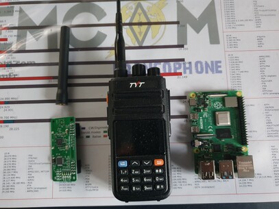 La photo de droite représente mon hotspot (Raspberry pi3+ avec son modem multi modes (C4FM, DMR, P25...). Une application gravée sur une carte mémoire et chargée dans le Rpi finalisera l'ensemble.