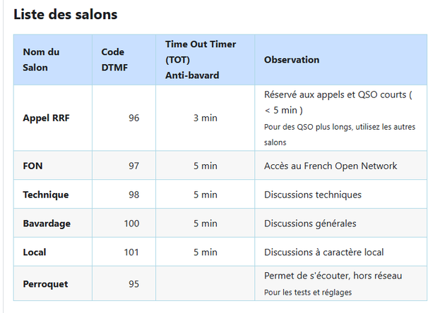 Les salons sont accessibles à l'aide d'un code DTMF.